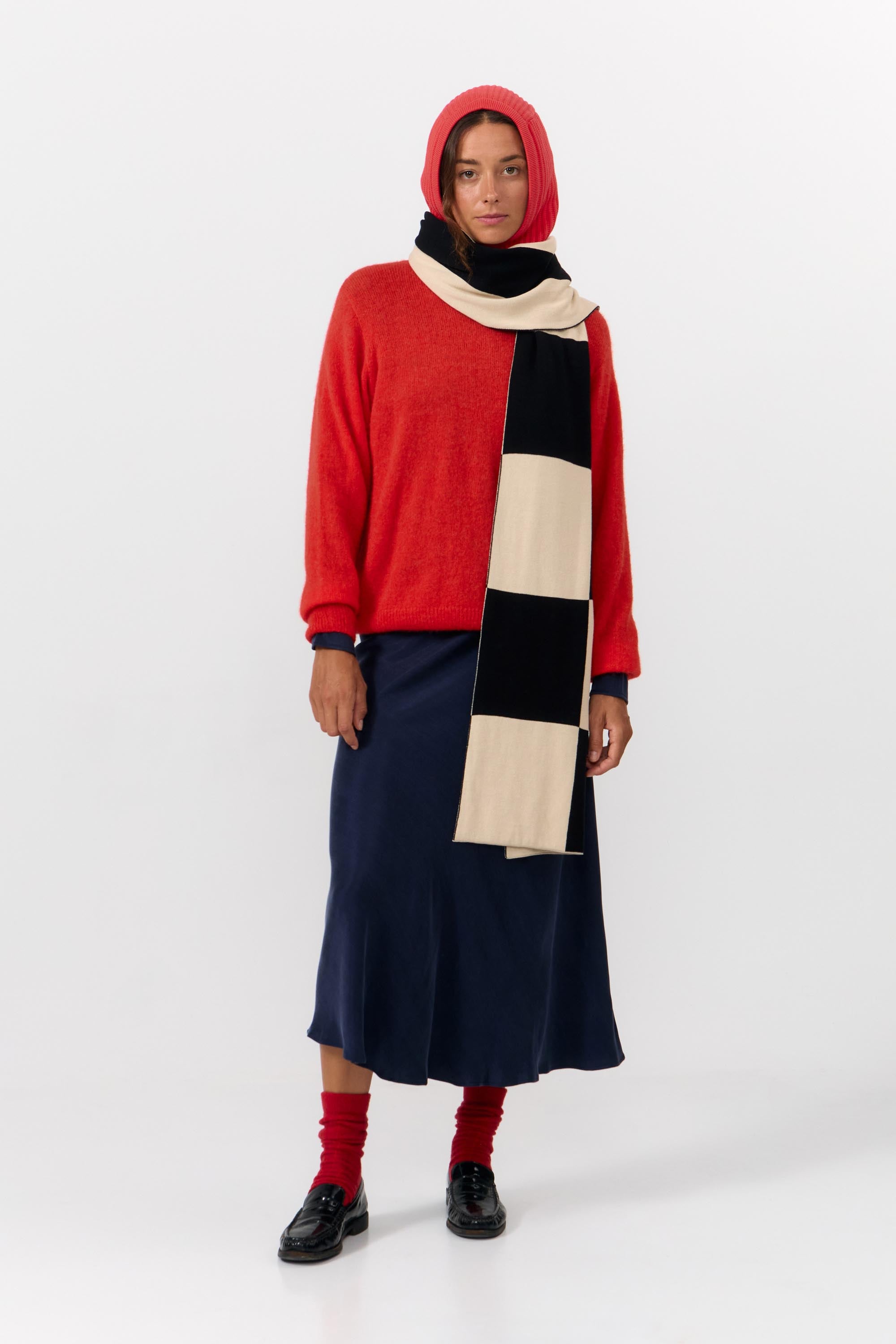 London Scarf doesn’t blend in, it stands out. Made from jacquard organic cotton, it features bold, clean prints that bring graphic energy to any outfit. The texture is structured yet soft, with a generous length that invites you to wear it your way: wrapped, draped or thrown over the shoulder. It’s the kind of piece that adds intention to your look without overthinking it.