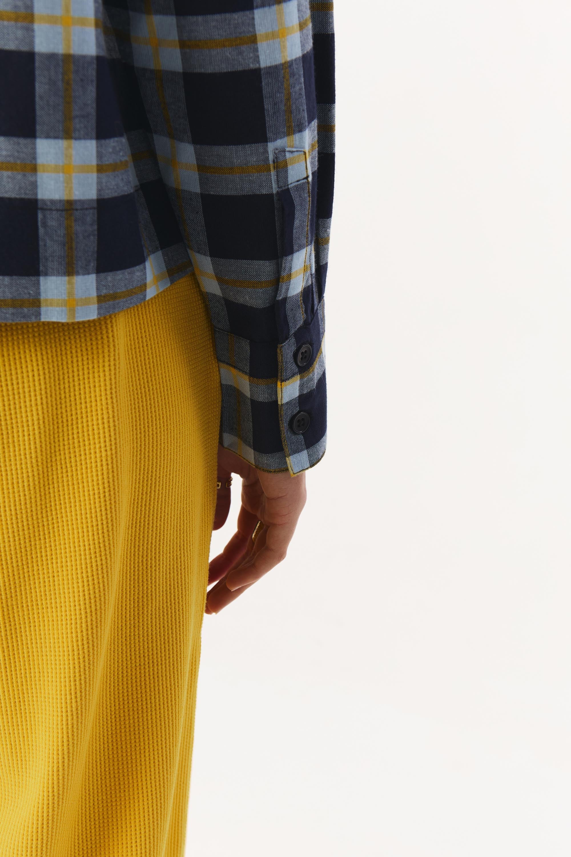 Meet Sens Shirt Check, a timeless collared staple crafted in organic cotton poplin. It features long sleeves with buttoned cuffs, corozo nut buttons down the front, and a relaxed yet polished silhouette. The classic check pattern adds an easygoing feel that balances its tailored lines providing a smart look without the effort.